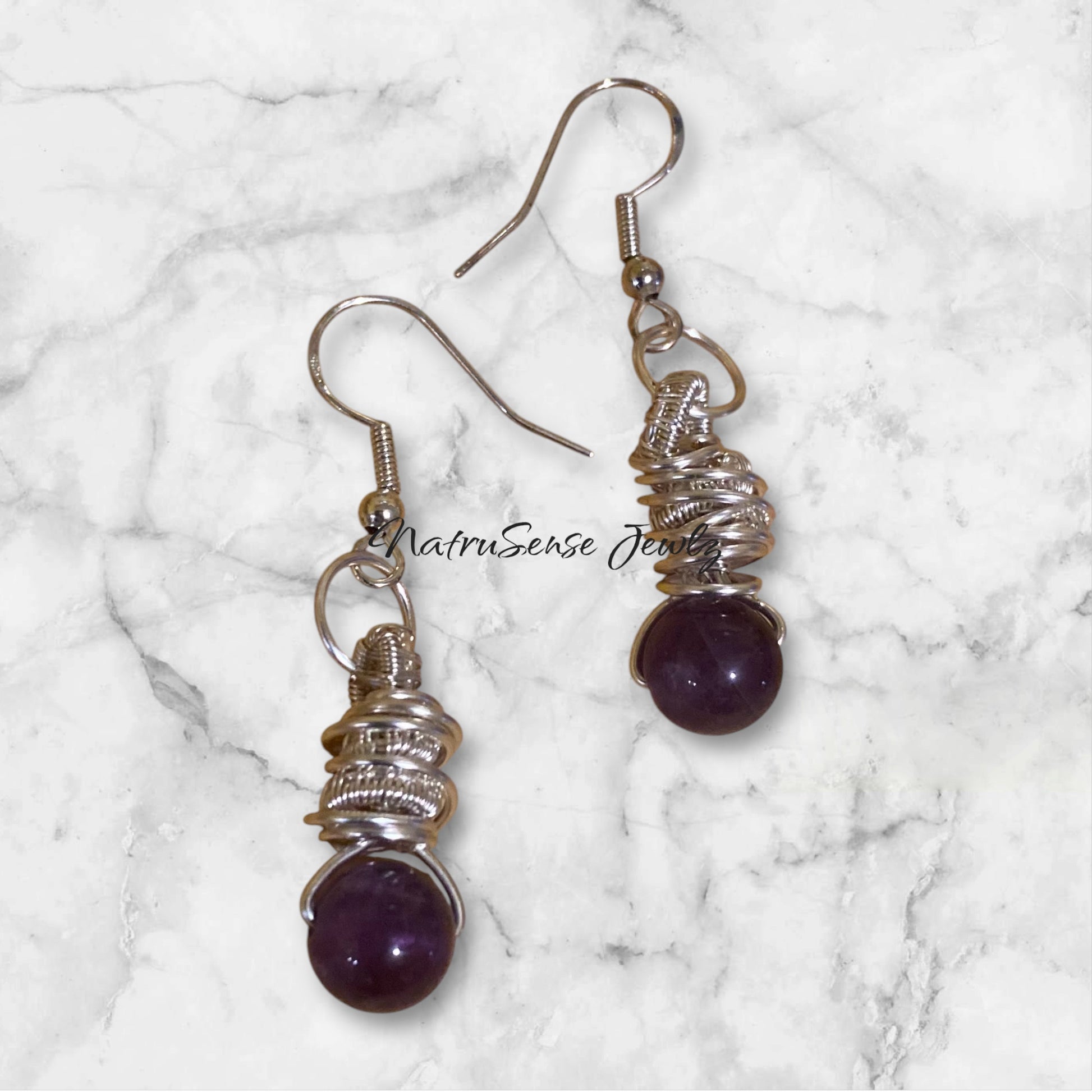 Experience the powerful energy of peace while wearing our Deep Weaved Amethyst sterling silver earrings that matches our pendant necklace. Made from the high energy gemstone Amethyst, these earrings will facilitate your peace, provide spiritual protection and Iit has a molecular structure of silicon dioxide with iron, harmonizing your mental, physical, and metaphysical bodies. Amethyst means sincerity and freedom of harm and will help ease overindulging. It’s purple color hue signifies power and royalty. Elevate your energy. Balance your emotions. These matching earrings are excellent for everyday wear.
