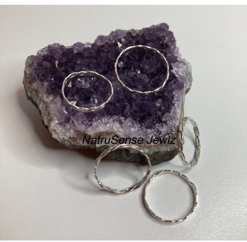 Elevate your everyday style with our Sterling Silver Stackable Rings! These minimalist rings feature a twisted, etched or basic design made with high-quality .925 sterling silver. Rings are sold in sets of two, allowing you to mix and match for a unique and personalized look. Add a touch of elegance to any outfit with these versatile and chic stackable rings.